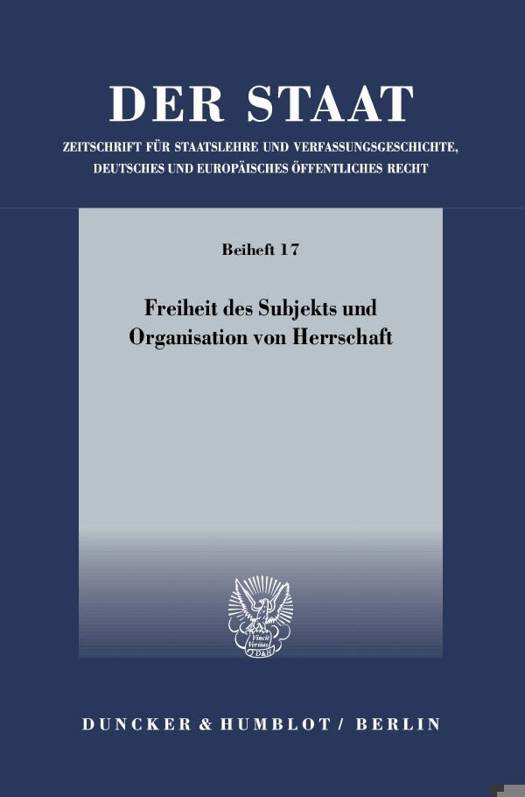 Beide Pole in ein Verhältnis zu setzen, war von Anfang an auch ein Anliegen Ernst-Wolfgang Böckenfördes. Ihm zu Ehren haben aus Anlaß seines 75. Geburtstages seine Schülerinnen und Schüler auf einem Symposium das schwierige Verhältnis zwischen Freiheit des Subjekts und Organisation von Herrschaft mit Ernst-Wolfgang Böckenförde diskutiert. Die Schriftfassungen der dort diskutierten Vorträge haben Eingang in dieses Beiheft gefunden.