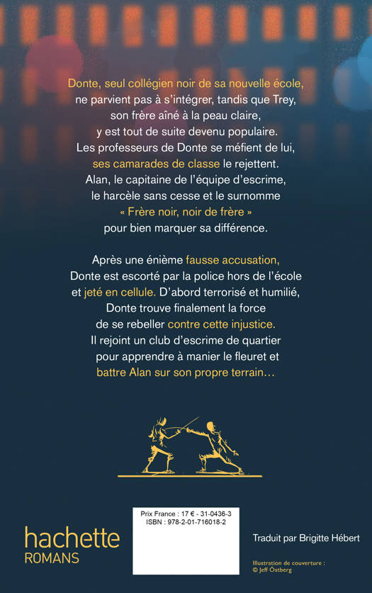 Donte, douze ans, aimerait parfois être invisible. Disparaître loin de son école. Loin d’Alan, le « Roi » du club d’escrime, qui le harcèle. Loin des professeurs et du directeur qui l’accusent en permanence, en raison de sa couleur de peau. Et ce, bien qu’il soit innocent. Après une énième accusation, Donte est embarqué par la police. Effrayé et apeuré, le jeune garçon ne sait plus vers qui se tourner. Même son frère Trey, plus clair de peau que lui, ne trouve pas les mots pour l’aider. À la recherche d’un endroit où il aurait enfin sa place, Donte finit par rejoindre un club d’escrime, bien loin de celui de son école privée. Il est bien décidé à montrer à Alan et aux autres que, lui aussi, mérite le respect.