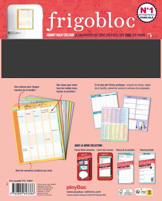 Des outils qui tiennent sur TOUS les frigos (même bombés) grâce à un maxi-aimant. Avec les dates officielles des vacances scolaires !