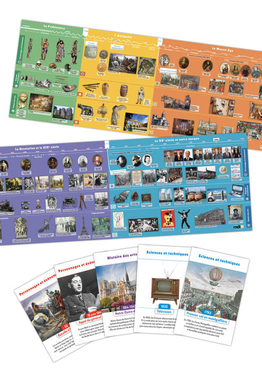 un guide pédagogique et un fichier d'activités accompagnent la frise. Ils sont disponibles gratuitement en téléchargement sur le site compagnon de la collection.