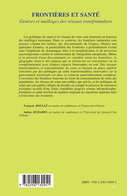 Depuis une quinzaine d'années, la perméabilité des frontières a évolué sous l'impulsion des dynamiques liées à la mondialisation et aux processus macrorégionaux comme le renforcement de l'intégration européenne. Des réseaux transfrontaliers et transnationaux de soins se mettent en place, parfois structurés par des politiques de santé transfrontalières innovantes. Les lieux de consommation de soins sont bousculés par l'ouverture des frontières.