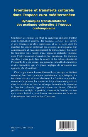 Les contributions de cet ouvrage étudient comment, dans leurs pratiques quotidiennes ou artistiques, les individus vivent, créent ou abolissent les frontières culturelles, comment s'expriment les pensées et les pratiques transgressives dans les relations et dans les échanges interculturels, comment la frontière culturelle apparaît comme un facteur d'identité possiblement multiple ou plurielle, comment la frontière, en tant qu'"espace liminal" peut devenir non seulement un facteur de cloisonnement mais aussi un lieu d'ouverture.