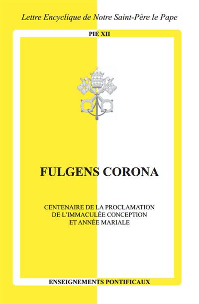 L'encyclique Fulgens corona a été donnée le 8 septembre 1953, en la fête de la Nativité de la Bienheureuse Vierge Marie. Ce document mariologique a permis au pape Pie XII de proclamer une année mariale pour le centenaire du dogme de l'Immaculée Conception, en 1954 , à ce titre, il a ajouté quelques éléments qui ont permis d'inscrire cette encyclique dans le développement de la doctrine sur la Conception immaculée de Marie.