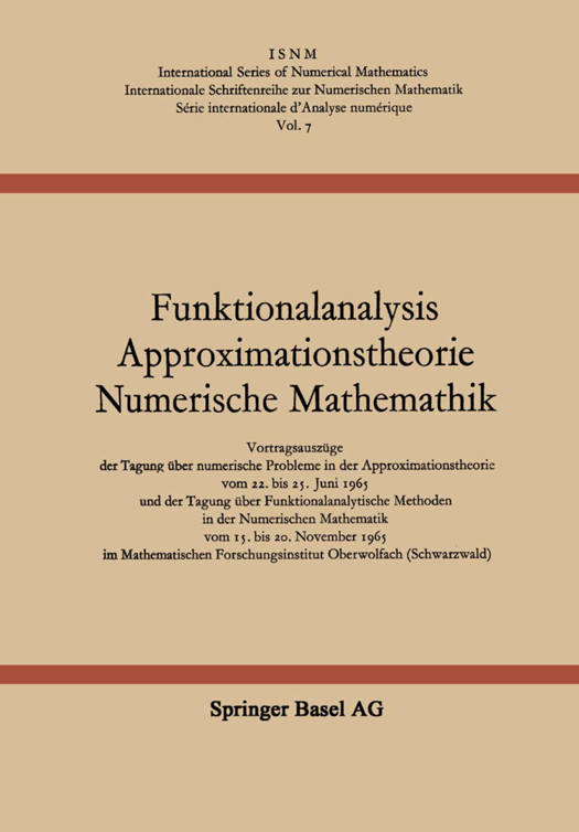 Vortragsauszüge Der Tagung Über Numerische Probleme in Der Approximationstheorie Vom 22. Bis 25. Juni 1965 Und Der Tagung Über Funktionalanalytische Methoden in Der Numerischen Mathematik Vom 15. Bis 20. November 1965 Im Mathematischen Forschungsinstitut O