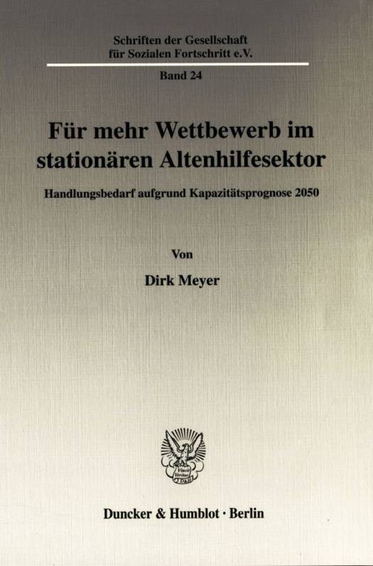 Als ordnungspolitisches Leitbild entwirft der Verfasser eine auf der Basis marktwirtschaftlicher Strukturen beruhende Versorgung unter Erschließung des privaten Kapitalmarktes. Im Mittelpunkt stehen eine Subjektförderung als Geldleistung sowie eine Reform des Gemeinnützigkeitsrechts, die eine Gleichstellung privat-gewerblicher Träger mit freigemeinnützigen Anbietern zum Ziel hat. Ein ausführlicher Exkurs zum EU-Sozial- und Wettbewerbsrecht unter Bezugnahme auf die einschlägige Rechtsprechung zeigen die hiermit verbundenen Chancen und Gefahren für die am Pflegemarkt teilnehmenden Akteure auf.