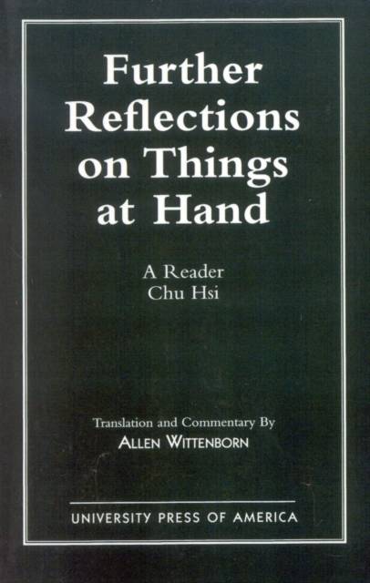 Chu Hsi (1130-1200), the renowned Chinese philosopher, lived during what is sometimes referred to as a "renaissance" in Chinese historyóa time of commercial expansion and intellectual innovation. Available for the first time in English, Chu Hsi's Sequel to Reflections on Things at Hand (Su chin-ssu-lu) is a collection of his sayings and writings, including personal letters, complete with commentaries and biographical notes. Wittenborn's Introduction provides a historical context for Chu Hsi's work and Neo-Confucianism. Contents: Introduction; The Background of Chu Hsi's Philosophy; The Metaphysical Dimension of Chu Hsi's Philosophy; The Psychological Dimension of Chu Hsi's Philosophy; The Su chin-ssu-lu.