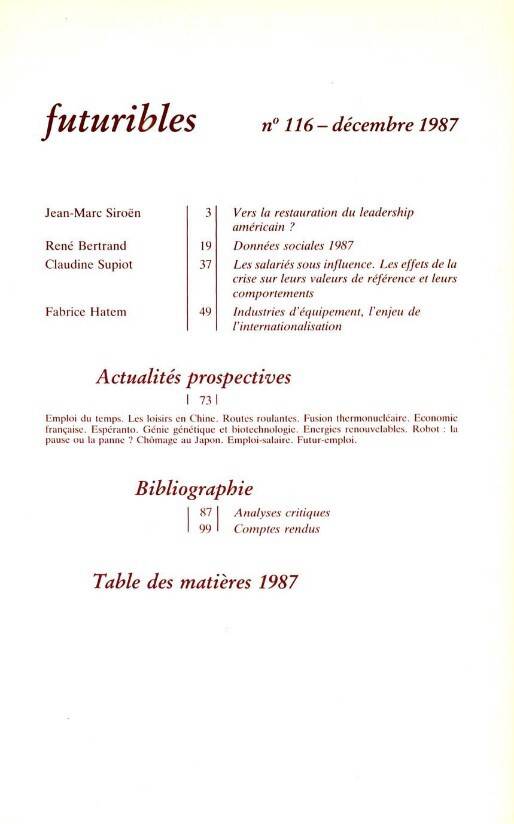 Données sociales 1987. Analyse des Données sociales de l’INSEE