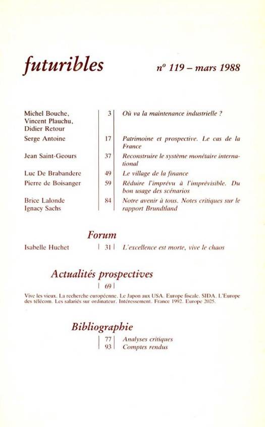 6. Futuribles 119, mars 1988. Le désordre monétaire et financier