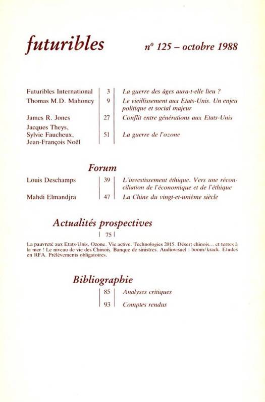 6. Futuribles 125, octobre 1988. Veillissement et conflit de générations