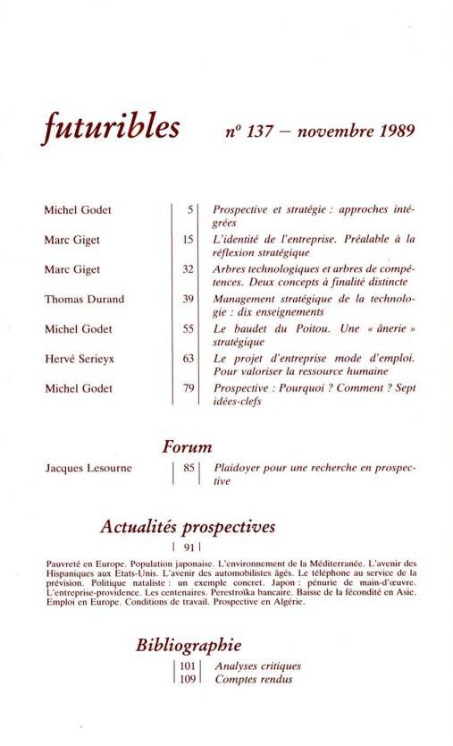 6. Futuribles 137, novembre 1989. L'identité de l'entreprise