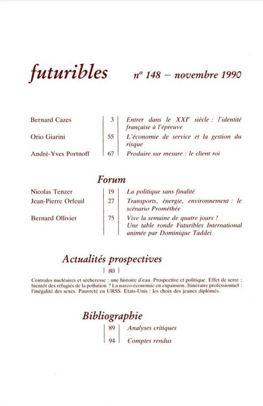 6. Futuribles 148, novembre 1990. La France à l'horizon 2000