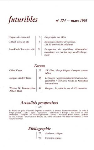 6. Futuribles 174, mars 1993. Des gisements d'emplois nouveaux