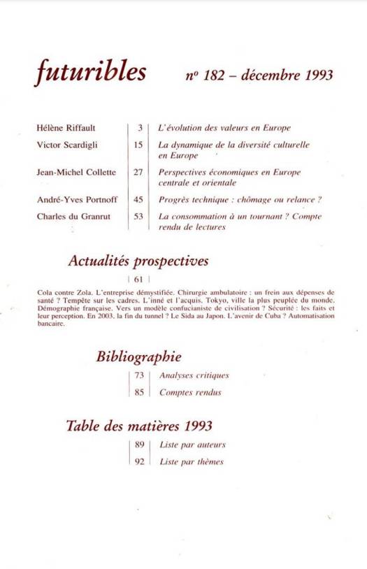 Futuribles 182, décembre 1993. L'évolution des valeurs en Europe
