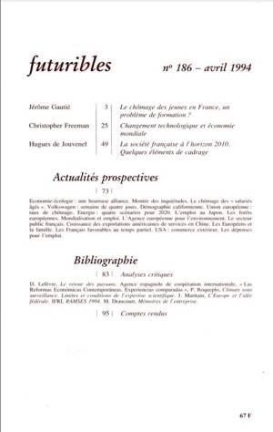 Futuribles 186, avril 1994. Le chômage des jeunes