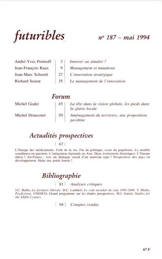 Futuribles 187, mai 1994. Les stratégies d'innovation