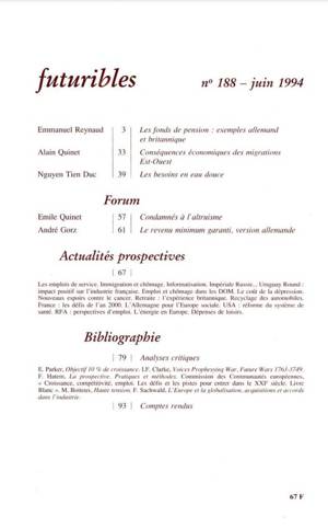 6. Futuribles 188, juin 1994. Les fonds de pension en Europe