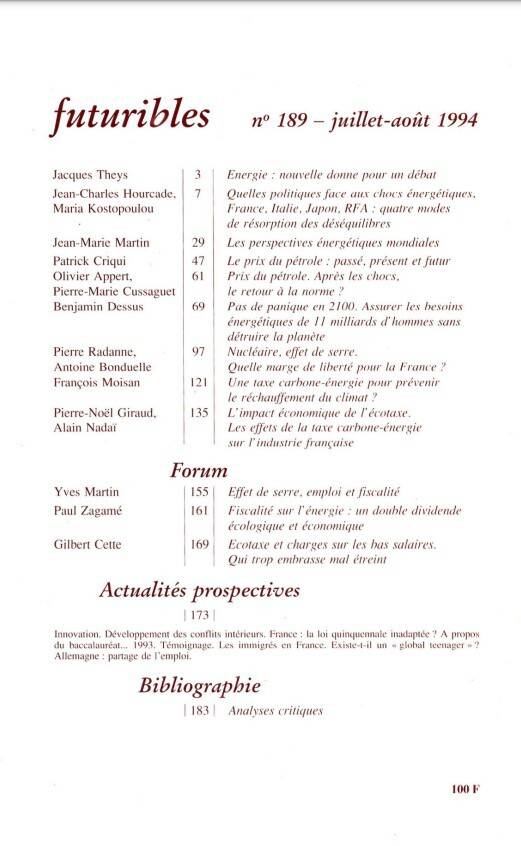 Forum Effet de serre, emploi et fiscalité MARTIN Yves