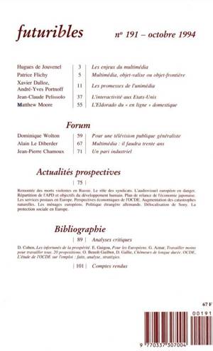 6. Futuribles 191, octobre 1994. Les enjeux du multimédia
