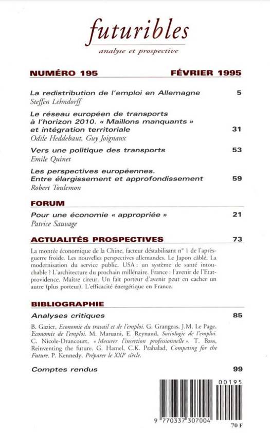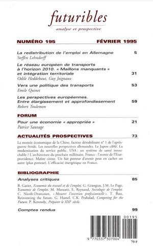 6. Futuribles 195, février 1995. Le partage de l'emploi en Allemagne