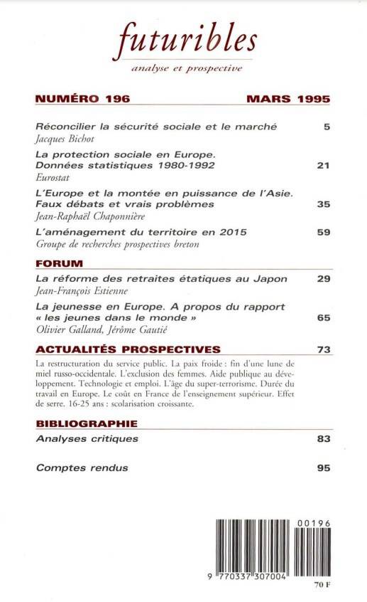6. Futuribles 196, mars 1995. Réconcilier sécurité sociale et marché