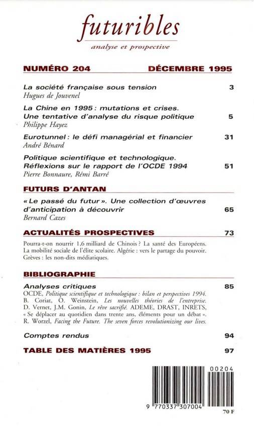 Futuribles 204, décembre 1995. Chine