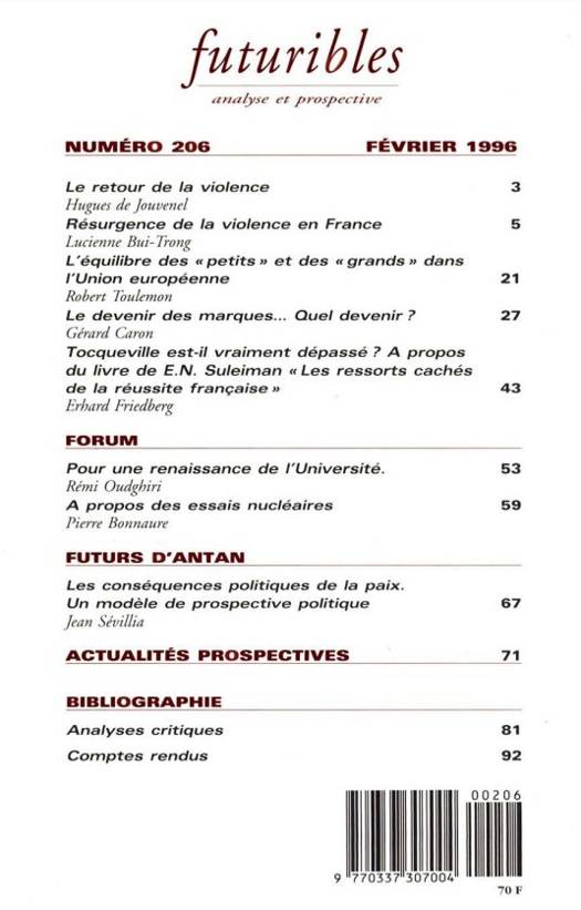 6. Futuribles 206, février 1996. Le retour de la violence