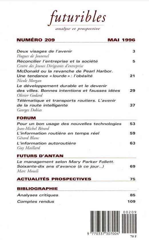 6. Futuribles 209, mai 1996. Réconcilier l'entreprise et la société