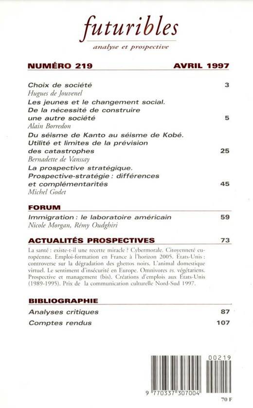 6. Futuribles 219, avril 1997. Les jeunes et le changement social