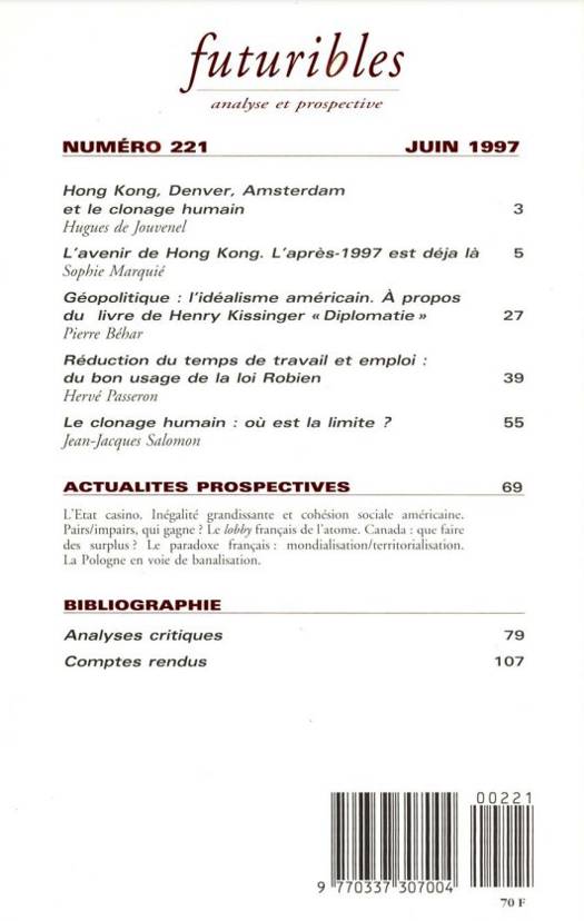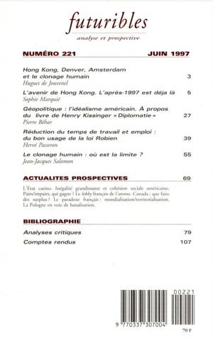 Futuribles 221, juin 1997. L'avenir de Hong Kong