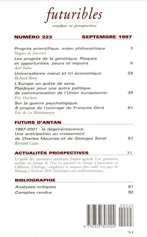 Futuribles 223, septembre 1997. Génétique