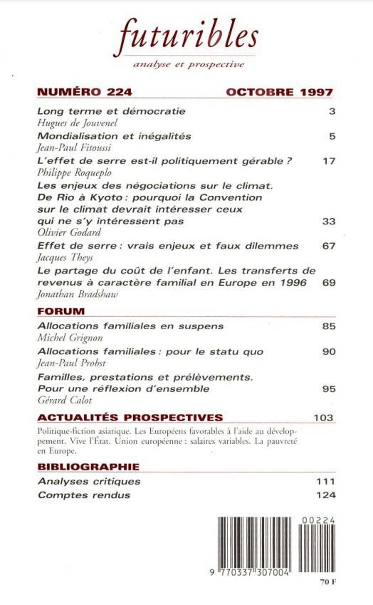 6. Futuribles 224, octobre 1997. Mondialisation et inégalités