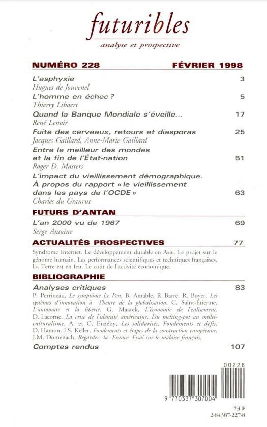 6. Futuribles 228, février 1998. Fuite des cerveaux et diasporas