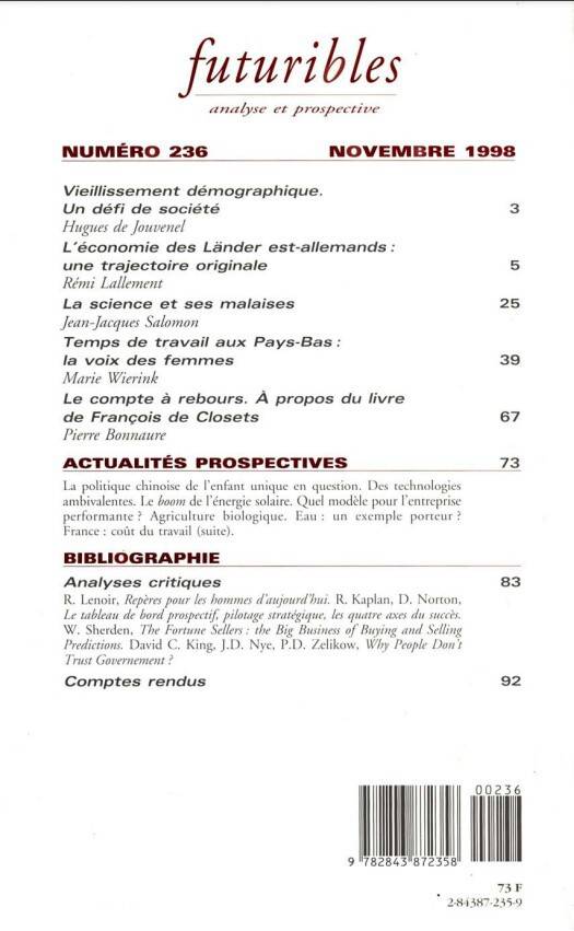 Futuribles 236, novembre 1998. L'unification allemande