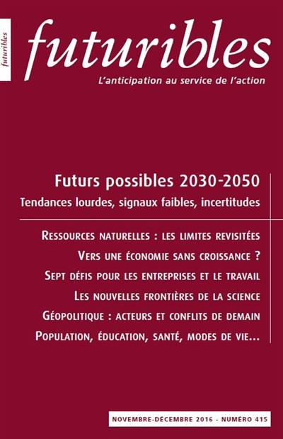 6. Futuribles 415, novembre-décembre 2016. Futurs possibles 2030-2050