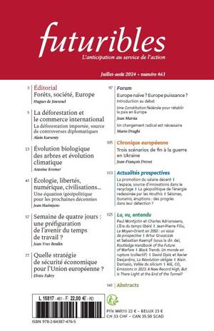 Actualités prospectives - Damon Julien. La promotion du salaire décent - Paillet Alexis et Fournel Valentin (interview par Quentin Bisalli). L’espace, source d’innovations dans le recyclage - Sassi Francesco. La géopolitique de l’énergie redessinée par les Houthis - Papon Pierre. Séismes, tsunamis, éruptions : des progrès dans leur détection ?