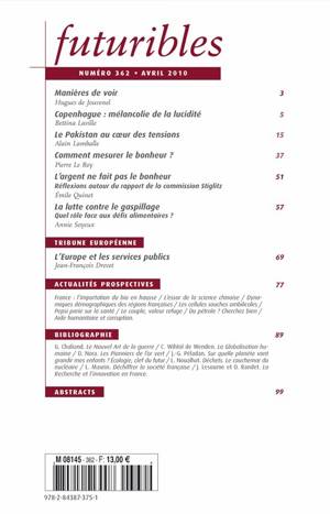 Bibliographie - G. Chaliand. Le Nouvel Art de la guerre - C. Wihtol de Wenden. La Globalisation humaine - D. Nora. Les Pionniers de l’or vert - J.-G. Péladan. Sur quelle planète vont grandir mes enfants ? Écologie, clef du futur - L. Noualhat. Déchets. Le cauchemar du nucléaire - L. Maurin. Déchiffrer la société française - J. Lesourne et D. Randet (sousla dir. de). La Recherche et l’innovation en France