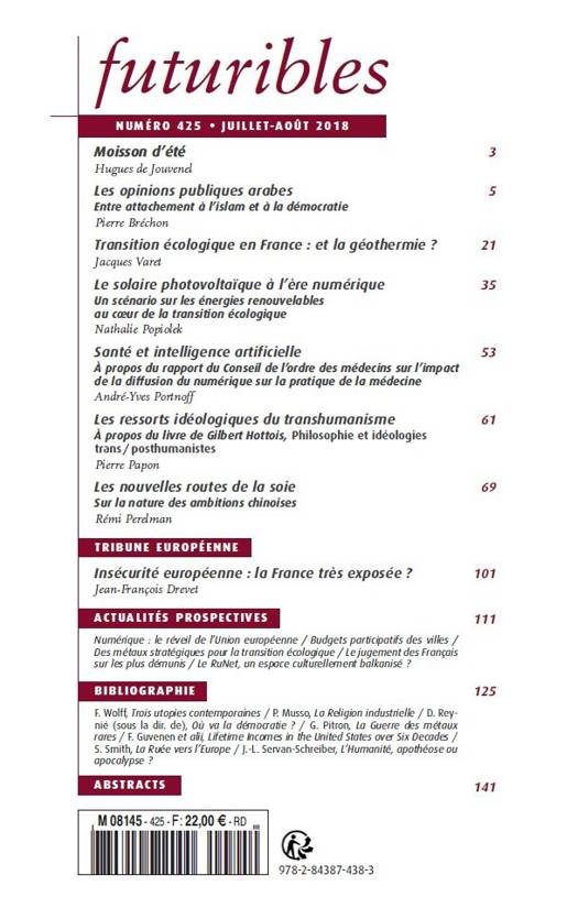 Bibliographie - F. Wolff, Trois utopies contemporaines - P. Musso, La Religion industrielle - D. Reynié (sous la dir. de), Où va la démocratie ? - G. Pitron, La Guerre des métaux rares - F. Guvenen et alii, Lifetime Incomes in the United States over Six Decades - S. Smith, La Ruée vers l’Europe - J.-L. Servan-Schreiber, L’Humanité, apothéose ou apocalypse ?