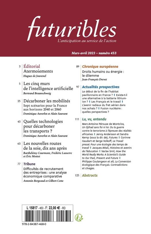 Actualités prospectives - Le début de la fin de l’habitat pavillonnaire en France ? - Existe-t-il une alternative à la batterie lithium-ion ? - Les Français et le travail - L’avenir radieux du fret aérien dans nos achats ? - Fusion nucléaire : quelles perspectives ?