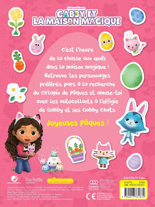 Pars à la chasse aux œufs à travers la maison magique avec Gabby et ses amis ! 14 activités variés : labyrinthe, ombres, cherche et trouve, suites logigues, coloriage... sur le thème de Pâques Plus de 40 stickers à utiliser dans les activités ou en dehors du livre. Un format pratique à emporter partout ! Résumé : C'est l'heure de la chasse aux œufs !...