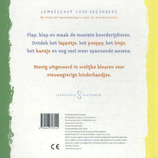 Flap, klap en maak de mooiste boerderijdieren. Ontdek het lappetje, het poeppy, het bisje, het kansje en nog veel meer spannende wezens. Stevig uitgevoerd in vrolijke kleuren voor nieuwsgierige handjes.