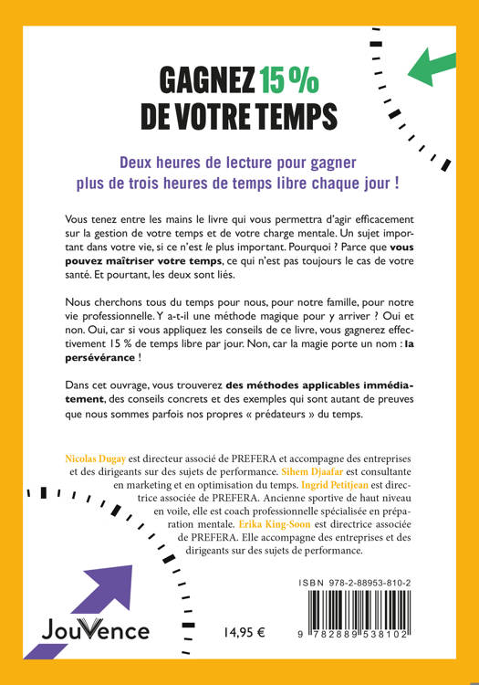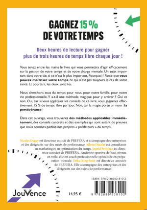 Nous cherchons tous du temps pour nous, pour notre famille, pour notre vie professionnelle. Y a-t-il une méthode magique pour y arriver ? Oui et non. Oui, car si vous appliquez les conseils de ce livre, vous gagnerez effectivement 15 % de temps libre par jour. Non, car la magie porte un nom : la persévérance !