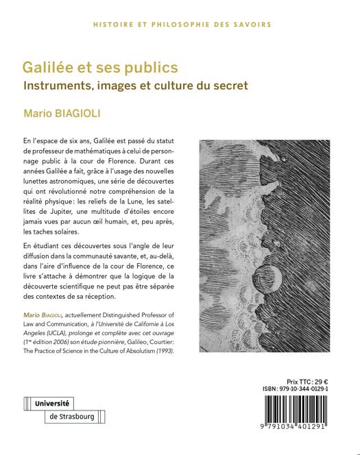 Avec la publication du Messager céleste (1610), Galilée est devenu un personnage public à la cour de Florence. C’est grâce à l’usage des nouvelles lunettes astronomiques qu’il avait pu faire une série de découvertes révolutionnaires : les reliefs de la Lune, les satellites de Jupiter, une multitude d’étoiles dans le ciel, puis les taches solaires. En étudiant ces découvertes sous l’angle de leur diffusion dans la communauté savante et dans l’aire d’influence de la cour de Florence, ce livre démontre que la logique de la découverte scientifique ne peut pas être séparée des contextes de sa réception.