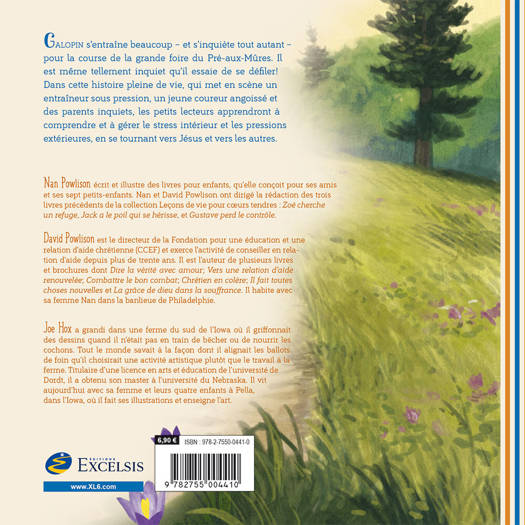 Galopin s’entraîne beaucoup – et s’inquiète tout autant – pour la course de la grande foire du Pré-aux-Mûres. Il est même tellement inquiet qu’il essaie de se défiler ! Dans cette histoire pleine de vie, qui met en scène un entraîneur sous pression, un jeune coureur angoissé et des parents inquiets, les petits lecteurs apprendront à comprendre et à gérer le stress intérieur et les pressions extérieures, en se tournant vers Jésus et vers les autres.