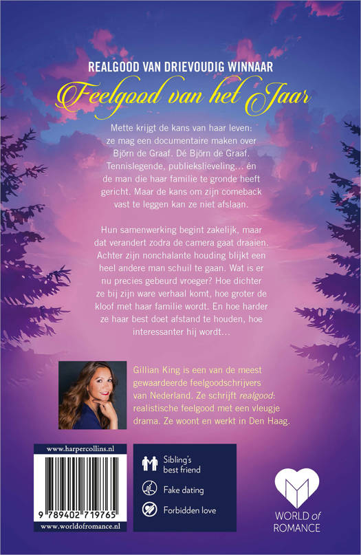 Mette krijgt de kans van haar leven: ze mag een documentaire maken over Björn de Graaf. Dé Björn de Graaf. Tennislegende, publiekslieveling… én de man die haar familie te gronde heeft gericht. Maar de kans om zijn comeback vast te leggen kan ze niet afslaan.
