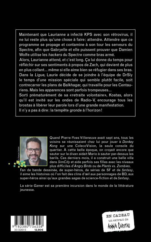 Maintenant que Laurianne a infecté KPS avec son rétrovirus, il ne lui reste plus qu'une chose à faire : attendre. Attendre que ce programme se propage et contamine à son tour les serveurs du Spectre, afin que Gabryelle et elle puissent prouver que Damien Wolfe utilise les hackers du Spectre comme bras armé. Alors, Laurianne attend, et c'est long. Ça lui donne du temps pour réfléchir sur ses sentiments à propos de Zach, qui devient de plus en plus collant... même si elle aime bien se réfugier dans ses bras. Dans la Ligue, Laurie décide de se joindre à l'équipe de DrSly le temps d'une mission spéciale qui semble plutôt facile, soit contrecarrer les plans de Balkhagar, qui travaille pour les Centauriens. Mais les apparences sont parfois trompeuses... Sorti prématurément de sa « retraite volontaire », Kostas, alors qu'il est invité sur les ondes de Radio-V, encourage tous les brostas à libérer leur parole lors d'une grande manifestation. Il n'y a pas à dire : la tempête gronde à l'horizon !
