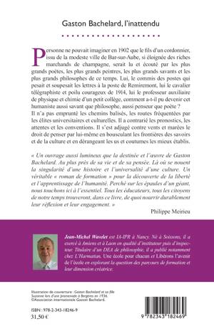 Comment Bachelard, fils d'un cordonnier, professeur de physique et chimie, a-t-il pu devenir cet humaniste aussi savant que philosophe, aussi penseur que poète ? Il n'a pas emprunté les chemins balisés, ceux des élites universitaires et culturelles. Il a contrarié les pronostics et les conventions. Il s'est adjugé contre vents et marées le droit de penser par lui-même en bousculant les frontières des savoirs et de la culture et en dérangeant les us et coutumes établis. « Un ouvrage aussi lumineux que la destinée et l'oeuvre de Gaston Bachelard. Au plus près de sa vie et de sa pensée. » (Philippe Meirieu)