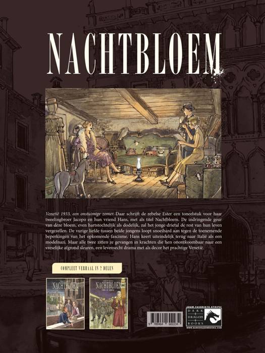 Venetië 1933, een onstuimige zomer. Daar schrijft de rebelse Ester een toneelstuk voor haar tweelingbroer Jacopo en hun vriend Hans, met als titel Nachtbloem. De indringende geur van deze bloem, even hartstochtelijk als dodelijk, zal het jonge drietal de rest van hun leven vergezellen. De vurige liefde tussen beide jongens loopt snoeihard aan tegen de toenemende beperkingen van het opkomende fascisme. Hans keert uiteindelijk terug naar Italië als een modelnazi. Maar alle twee zitten ze gevangen in krachten die hen onontkoombaar naar een vreselijke afgrond sleuren, een levensecht drama met als decor het prachtige Venetië.