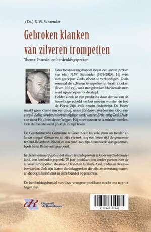 Deze herinneringsbundel bevat een aantal preken van (ds.) N.W. Schreuder (1933-2025). Hij wist zich geroepen Gods Woord te verkondigen. Zoals eenmaal de zilveren trompetten in Israël klonken (Num. 10:1vv), vaak met gebroken klanken als men werd opgeroepen tot de strijd.