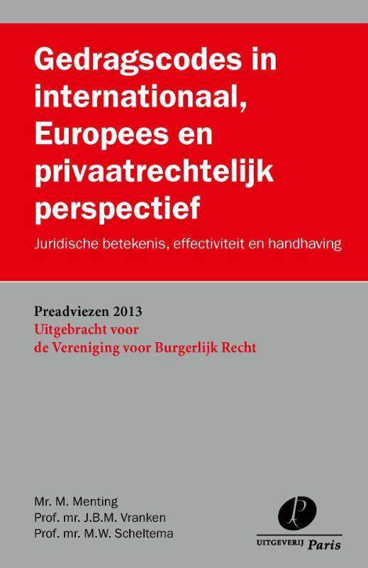 In dit boek zijn twee preadviezen voor de Vereniging voor Burgerlijk recht opgenomen, met als thema 'Internationale codes en privaatrechtelijke handhaving'.