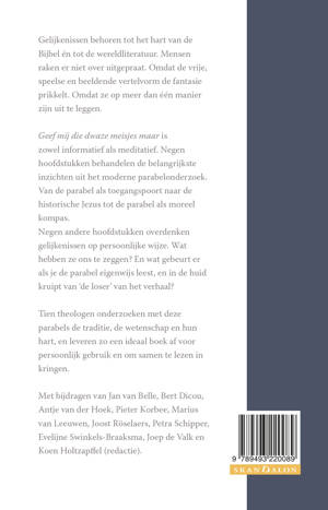 Geef mij die dwaze meisjes maar is zowel informatief als meditatief. Negen hoofdstukken behandelen de belangrijkste inzichten uit het moderne parabelonderzoek. Van de parabel als toegangspoort naar de historische Jezus tot de parabel als moreel kompas.